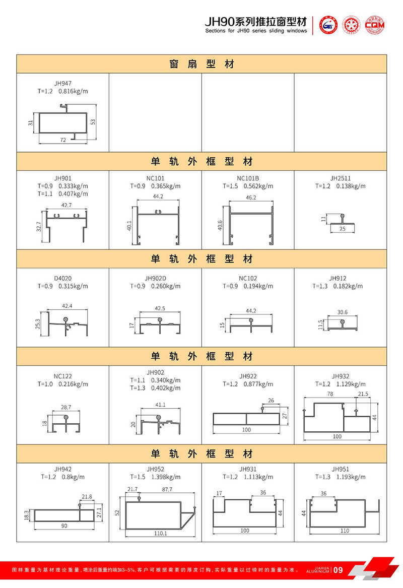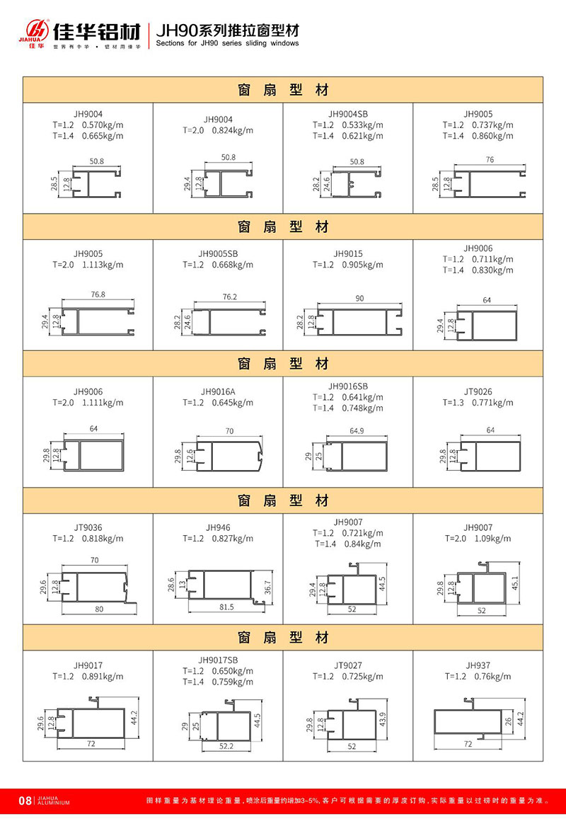鋁型材規(guī)格型號(hào):JH90 二