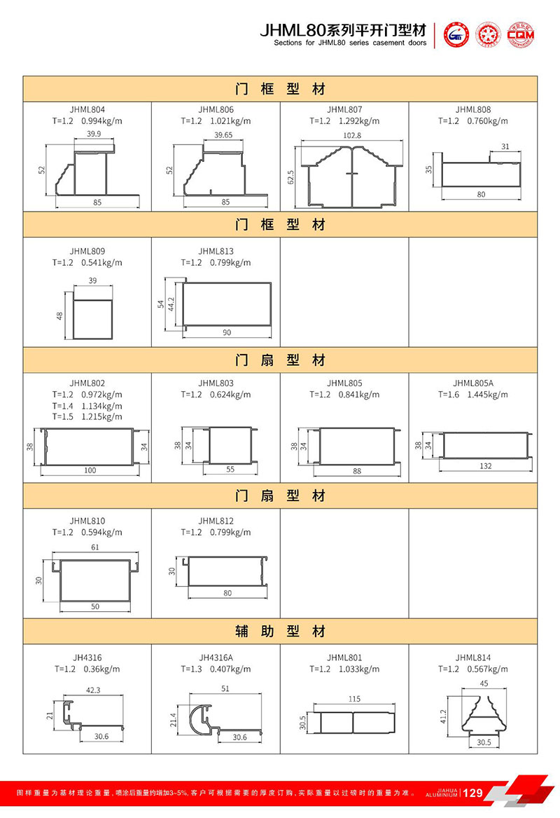 鋁型材規(guī)格型號:JHML80