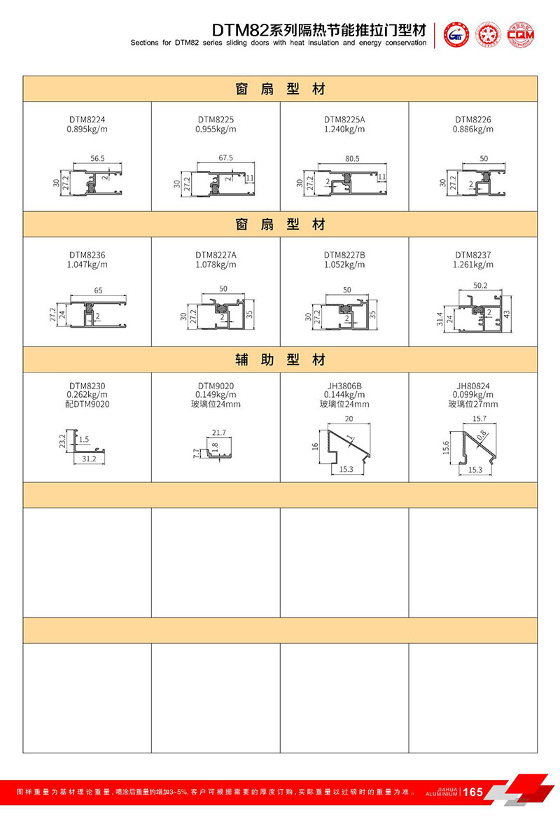 鋁型材規(guī)格型號(hào):DTM82推拉系列