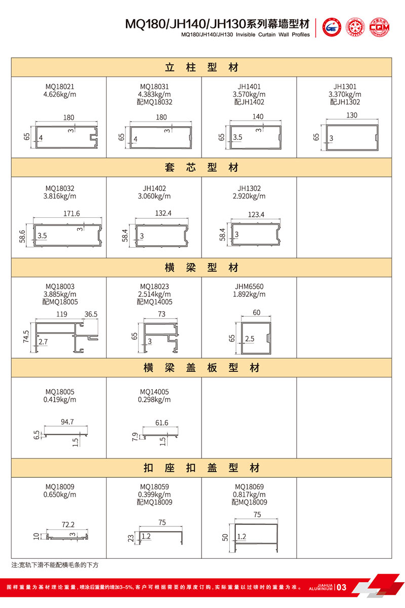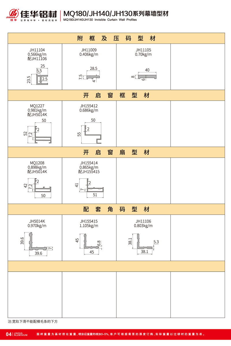 鋁型材規(guī)格型號(hào):MQ180/JH140/JH130 B
