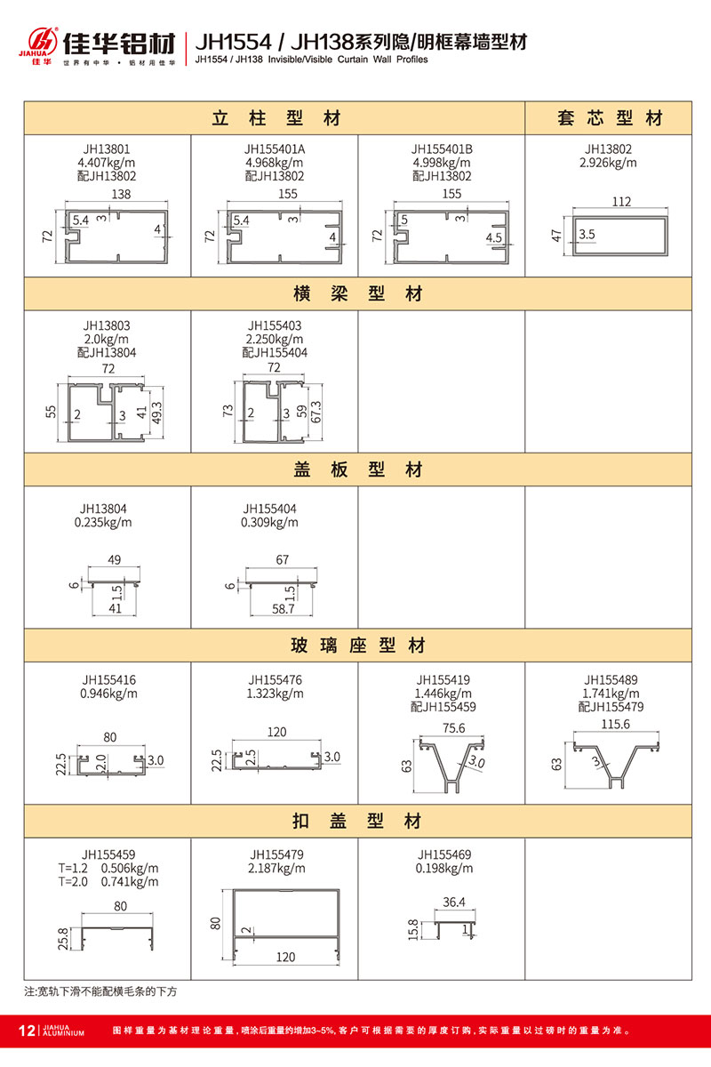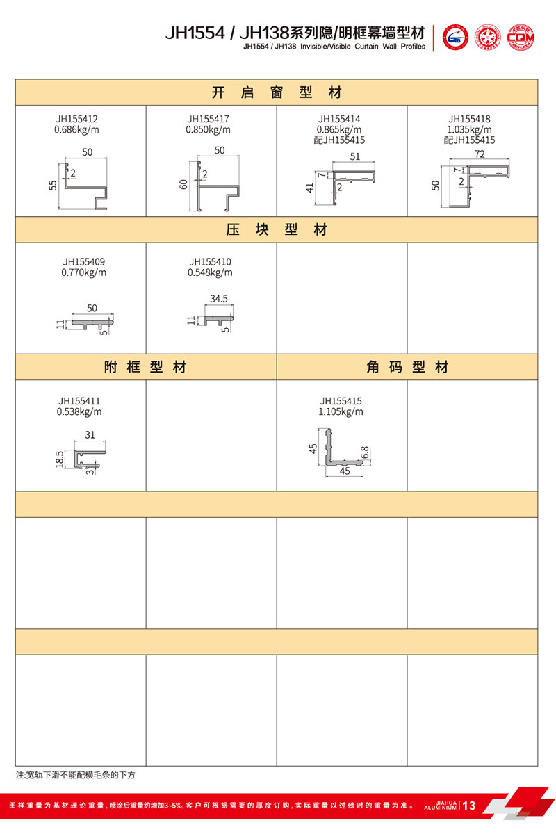 鋁型材規(guī)格型號(hào):JH1554/JH138 A