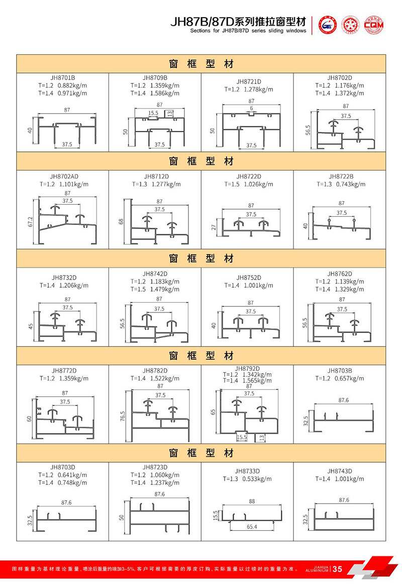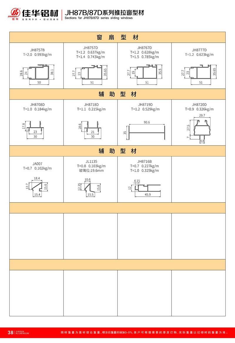 鋁型材規(guī)格型號(hào):JH87B/87D 二