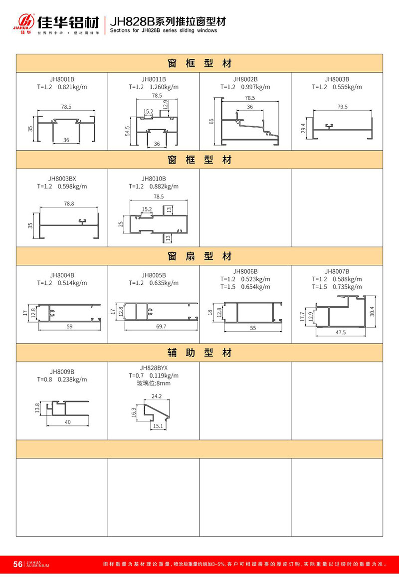 鋁型材規(guī)格型號:JH828B