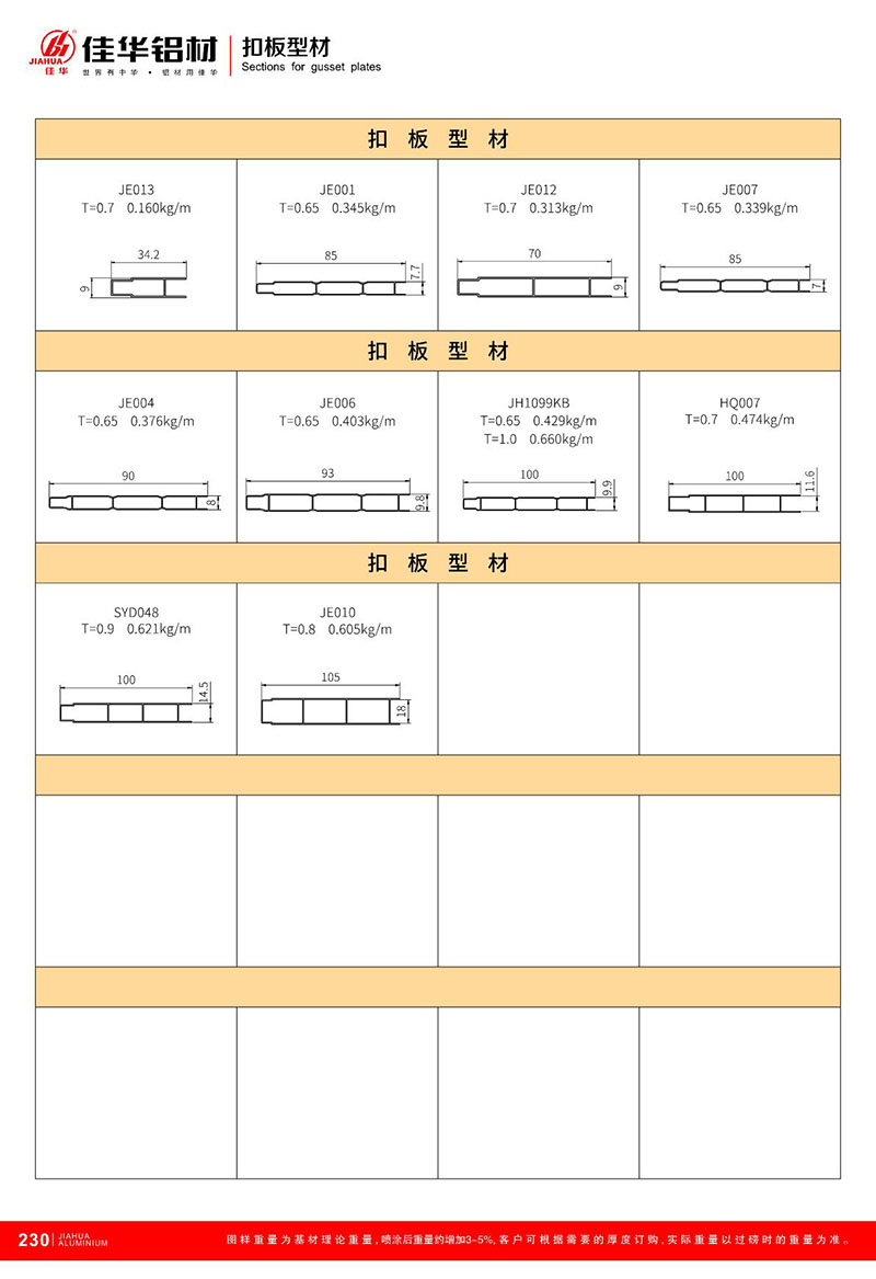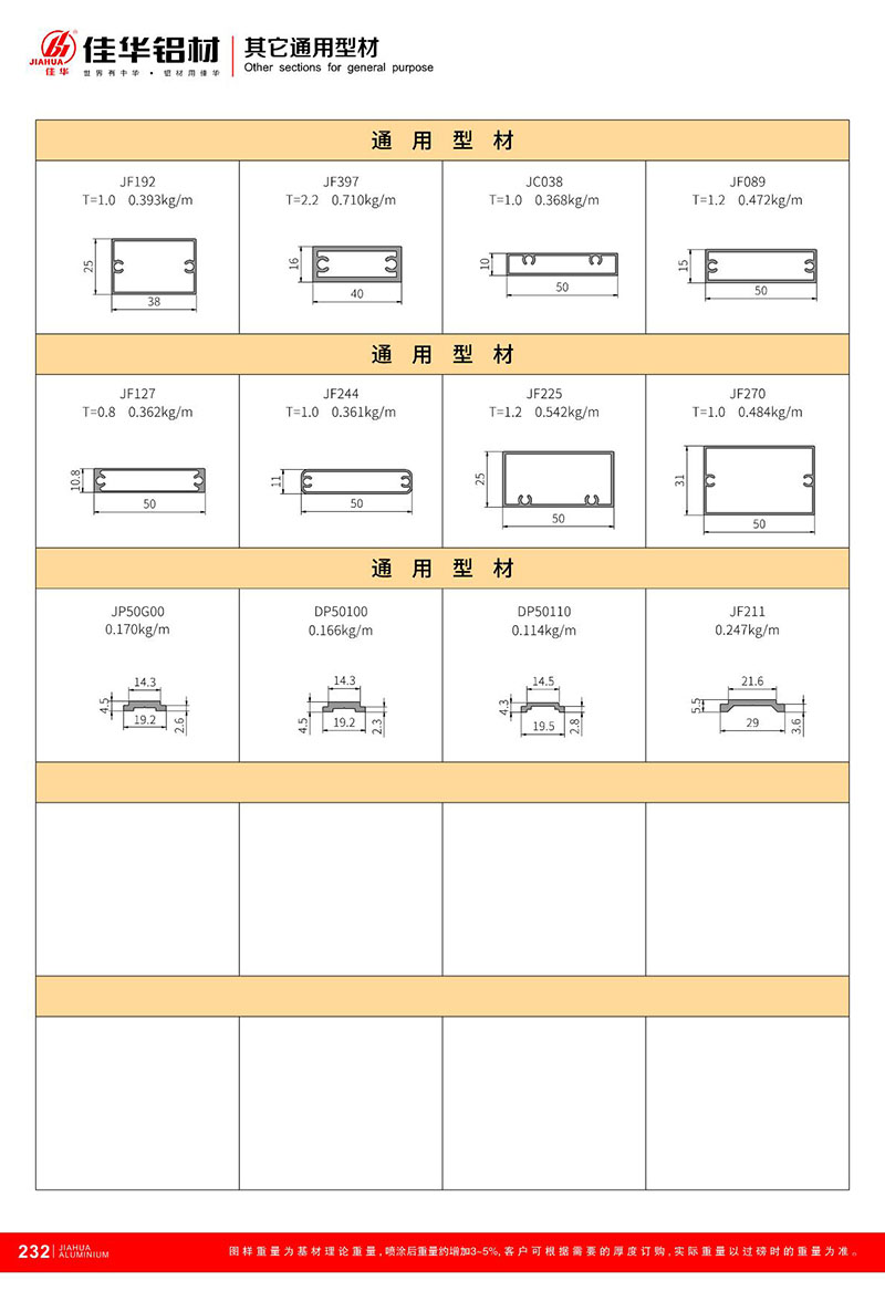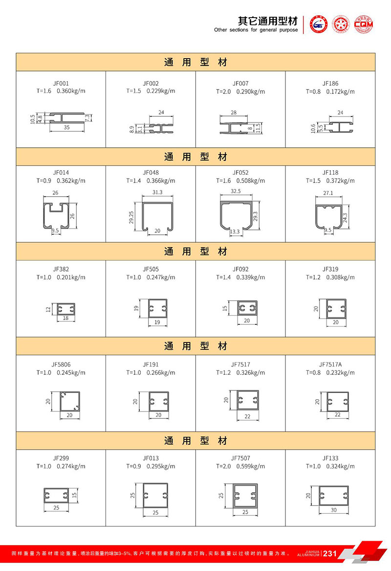 鋁型材規(guī)格型號(hào):其他通用型材