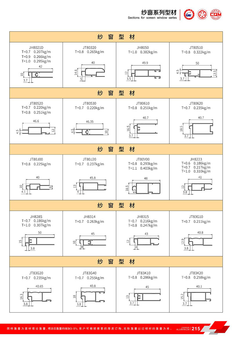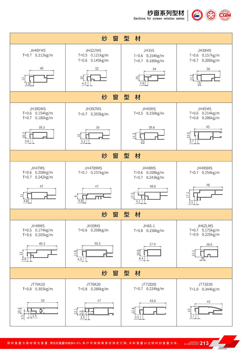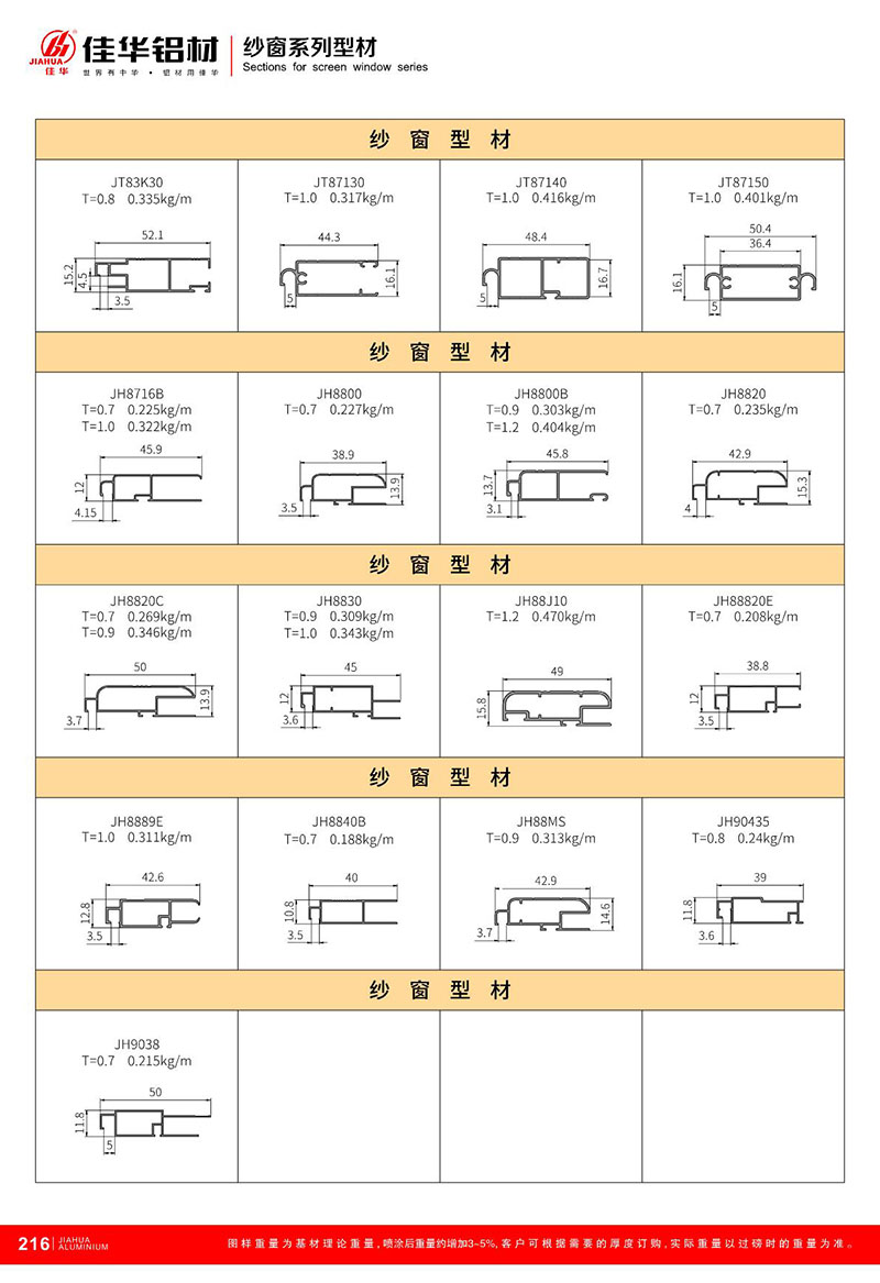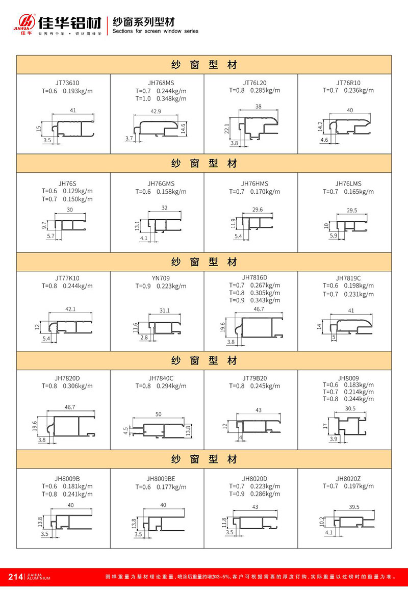 鋁型材規(guī)格型號:紗窗型材