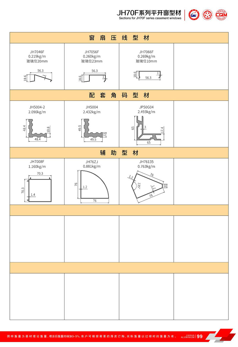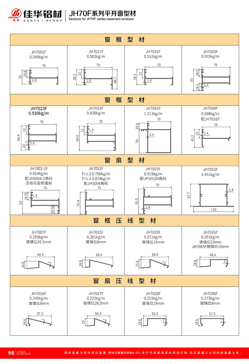 鋁型材規(guī)格型號:JH70F